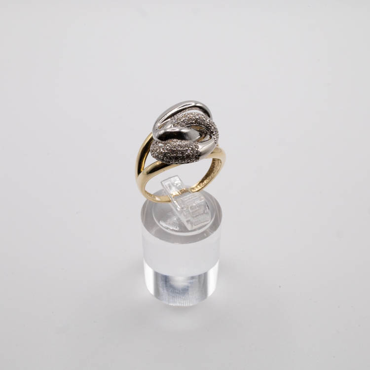 Zircon stones; yellow and white gold