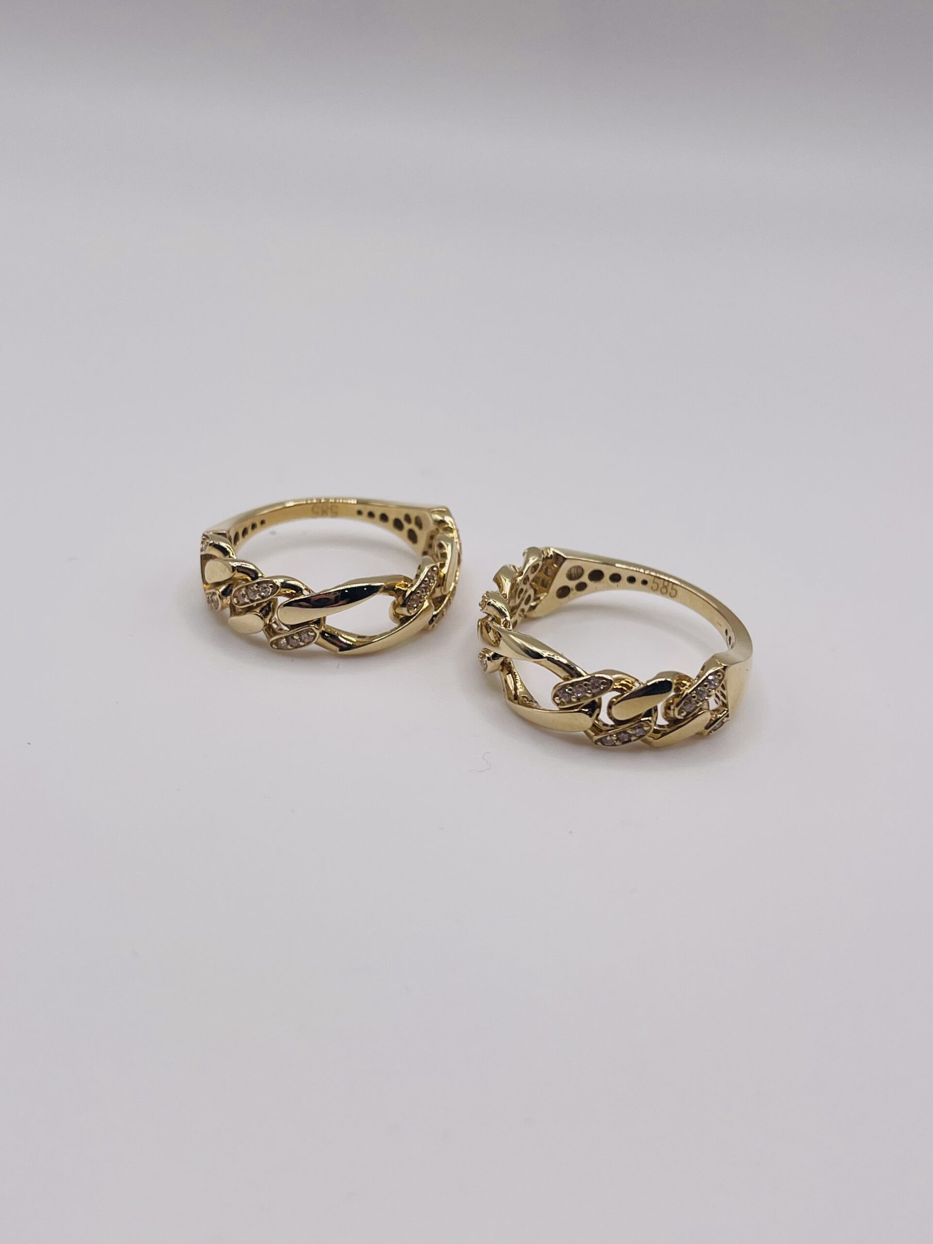 Elegant 14k (585) gold ring designed with interlocking chain links, enhanced by delicate zircon accent for a subtle sparkle. A stylish and modern piece perfect for everyday wear.