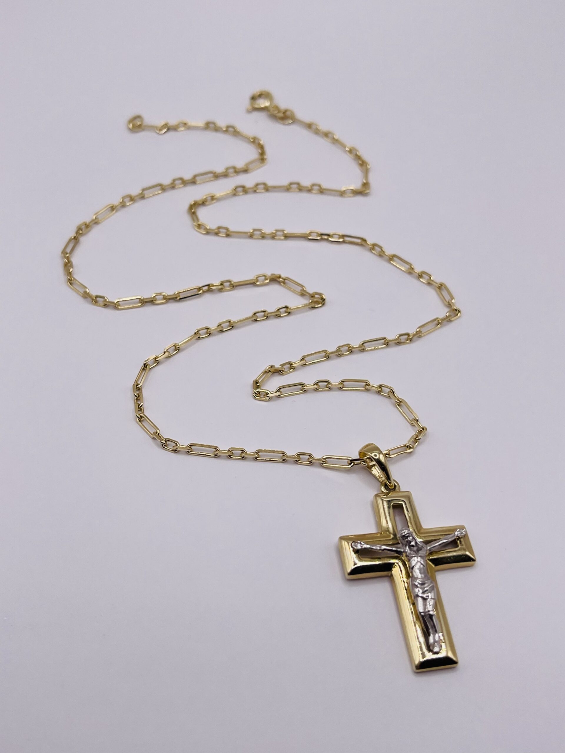 Elegant 14k (585) gold cross necklace featuring a refined two tone design. A timeless and meaningful piece, perfect for everyday wear or as a special gift.