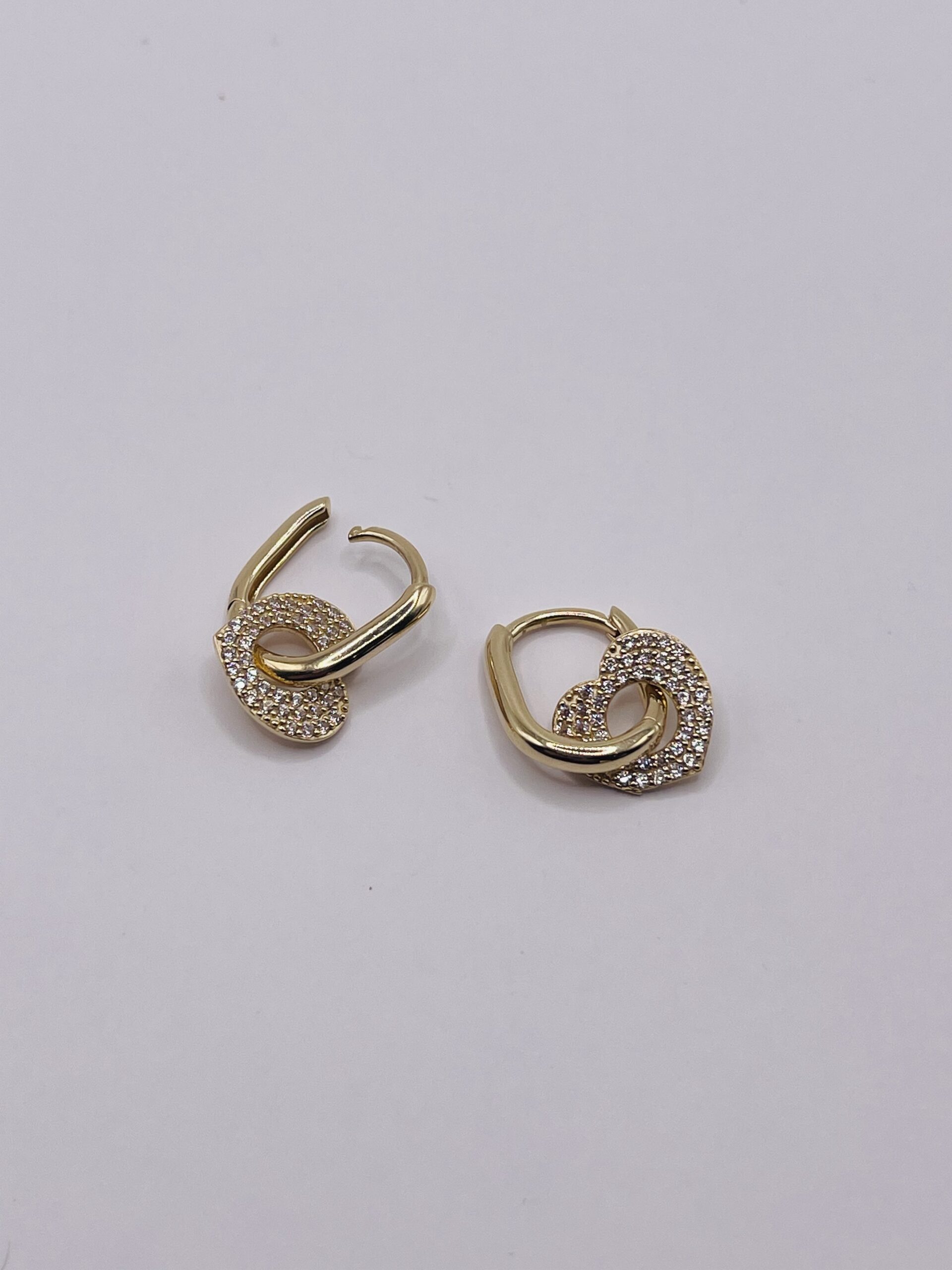 Elegant 14k (585) gold hoop earrings featuring a delicate heart design adorned with sparkling zircon stones. A romantic and stylish piece, perfect for everyday wear or a special gift.