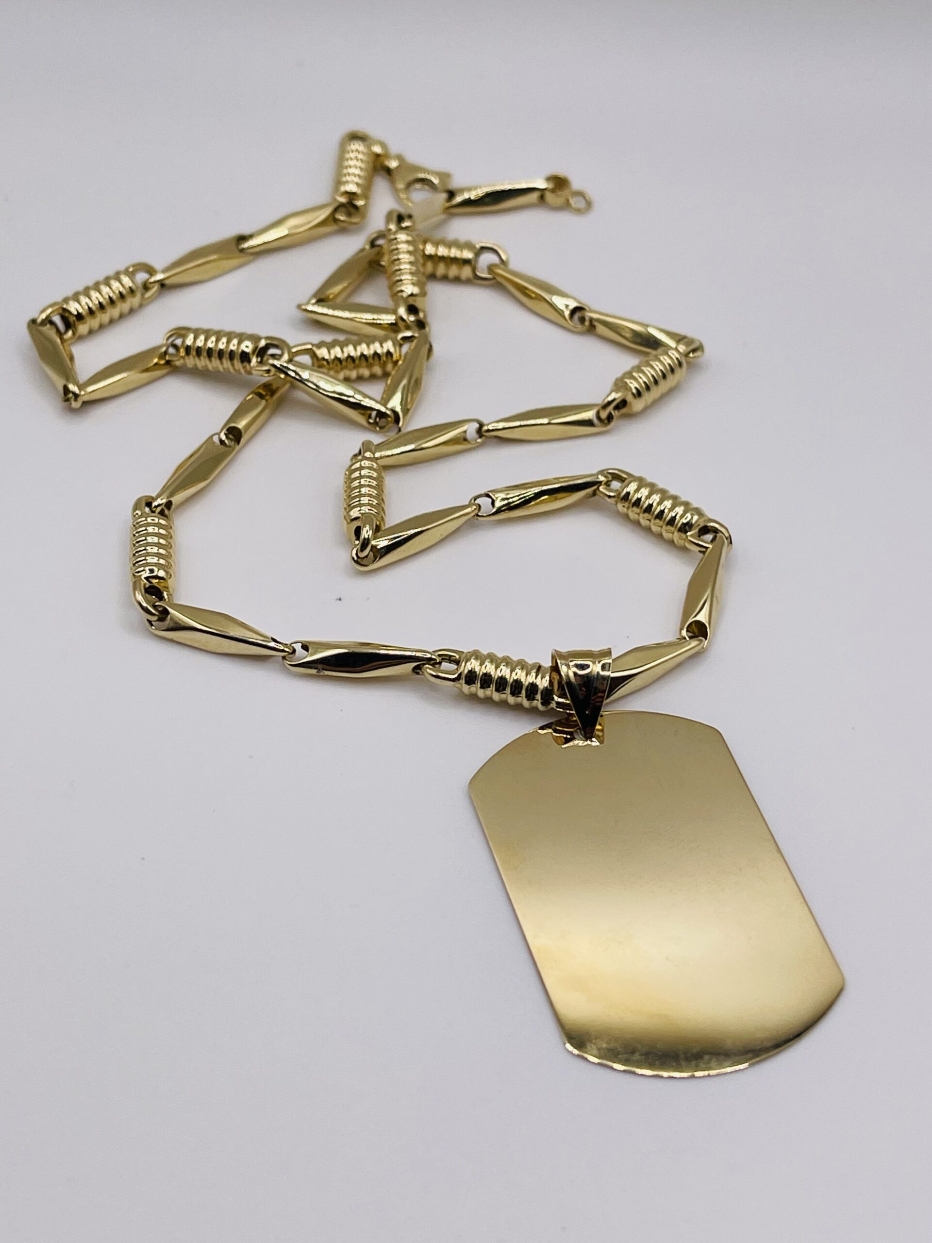 Solid 14K (585)gold dog tag pendant designed for men who prefer a strong and clean style.